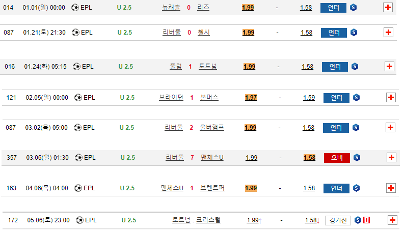 언더 2.5 +