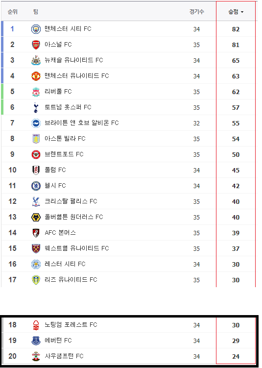 현재 순위는  노팅엄이 18위지만    사실상  리즈가 18위 라고 봐도