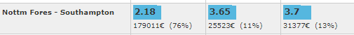 제 판단에 이정도 배당에 이정도 구매율 이면   노팅엄 승은 물건너 간겁니다.