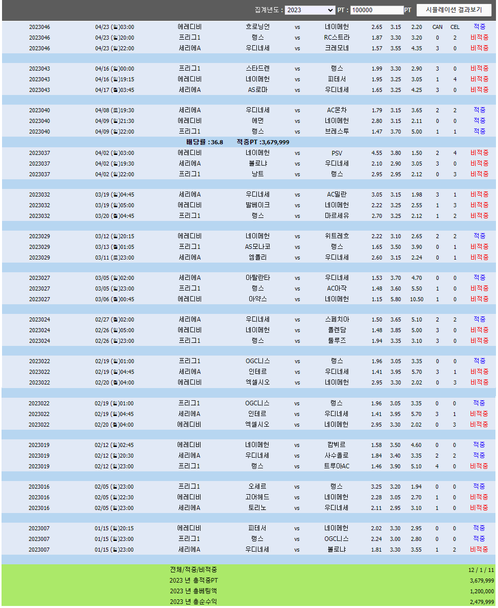 총 12번의    3무 배팅을 했을때     23년은  1번 적중 했습니다