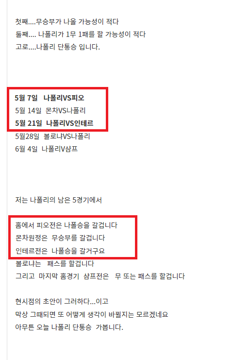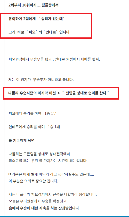 그래서 피오랑 할때 와    인테르랑 할때     나폴리를 찜 해둔 상태였져