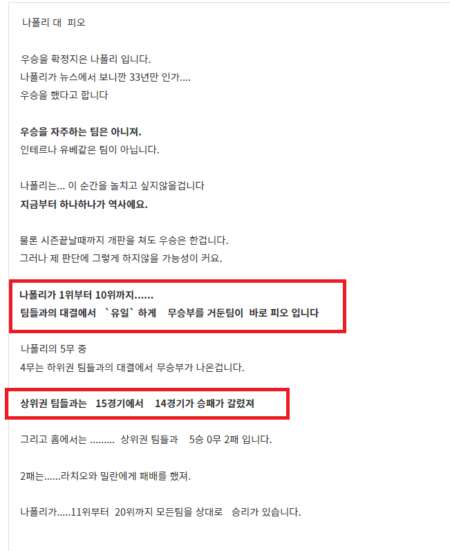 핵심포인트는..... 나폴리가 우승하는 시즌에