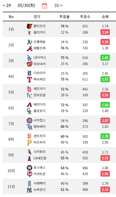 저배당이  다저스.....애리........그리고   애틀 정도 인데
