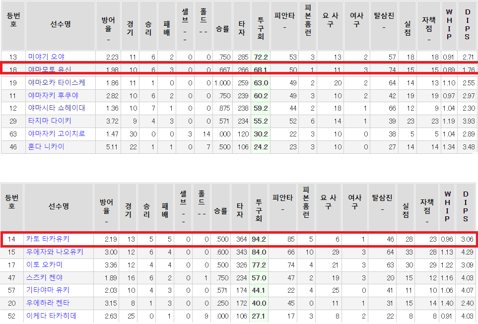 오릭스 투수들....... 니혼햄 투수들......... 비교를 해봐도