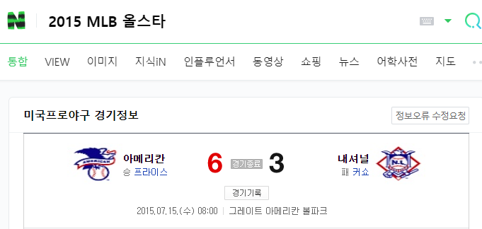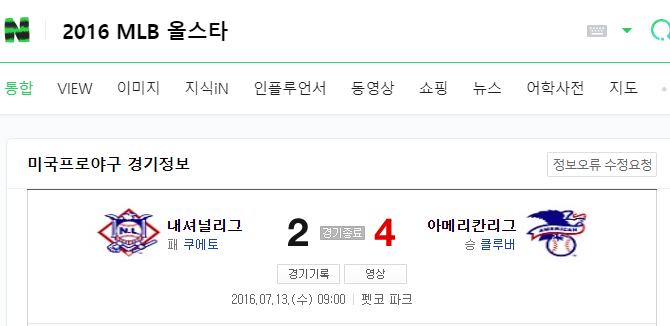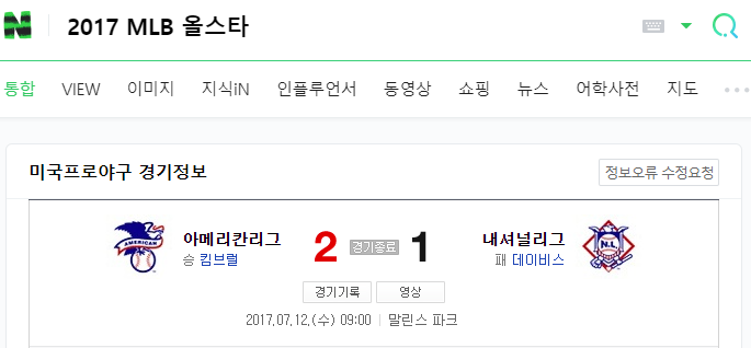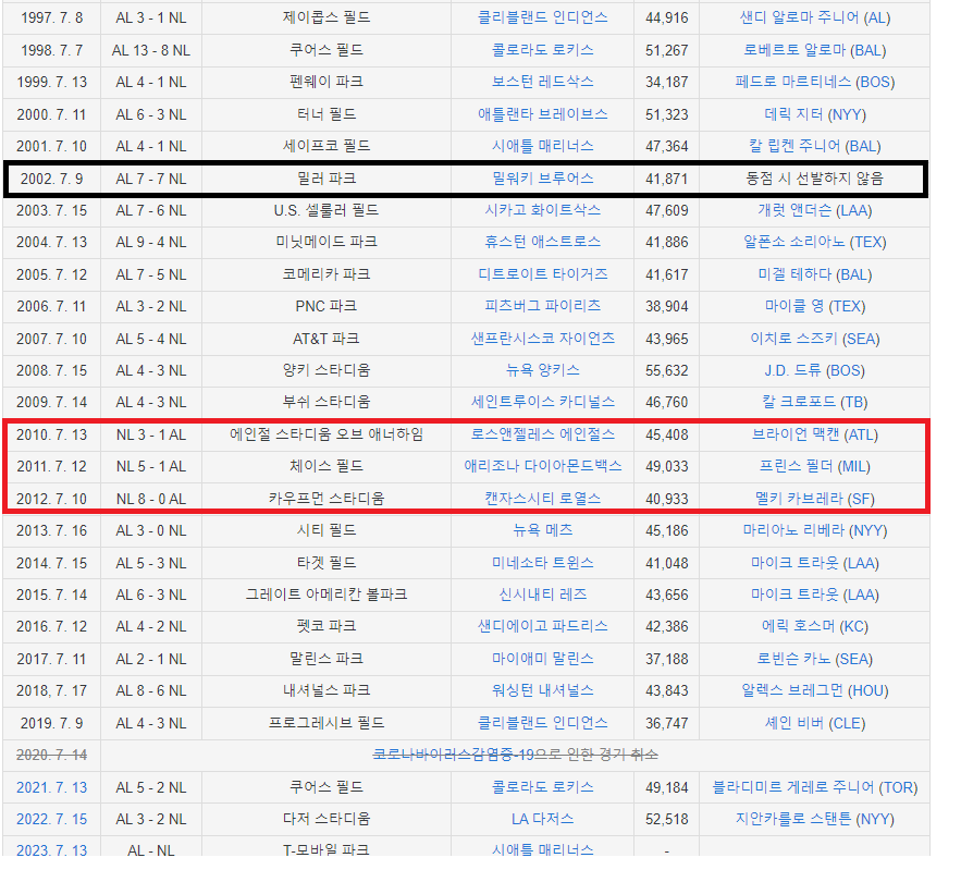 아마도 (?)  굳이 찾아보진 않았는데    아메리칸 리그에서 열리면