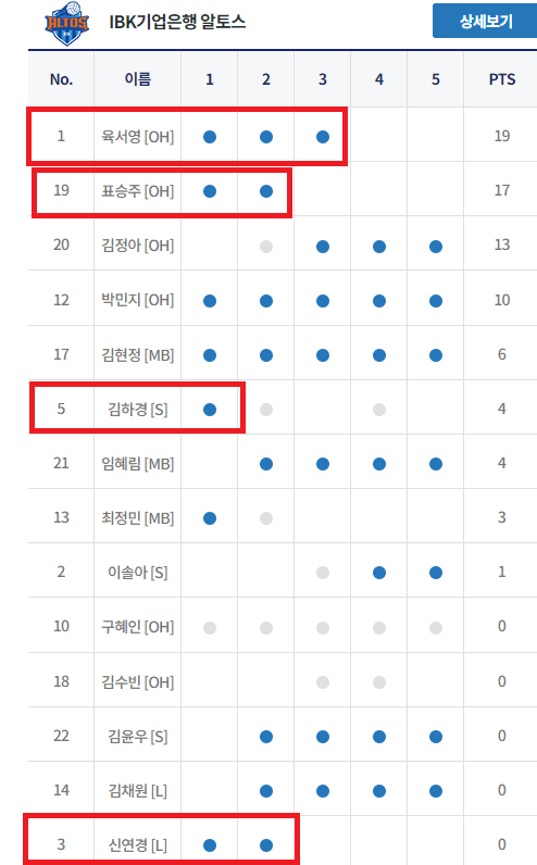표승주 2세트만 한거 같고    세터 1세트   리베로 2세트