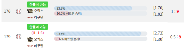 이 경기를 분석하면 ...... 오릭스승에 매우 유리하게 나옵니다