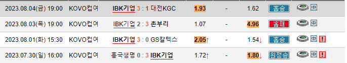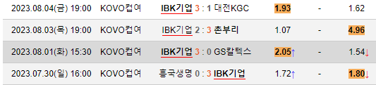 기업은 컵대회 4경기 모두 역배가 나왔고    기름은 4경기중 3경기가 역배였습니다