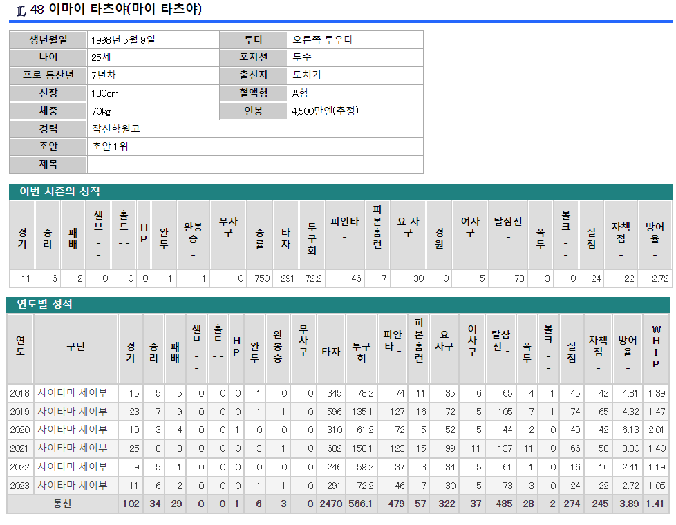 야마모토 보다 년차대비 기록이 더 좋습니다.   야마모토는 4-5년차 인가...터진 케이스 구요