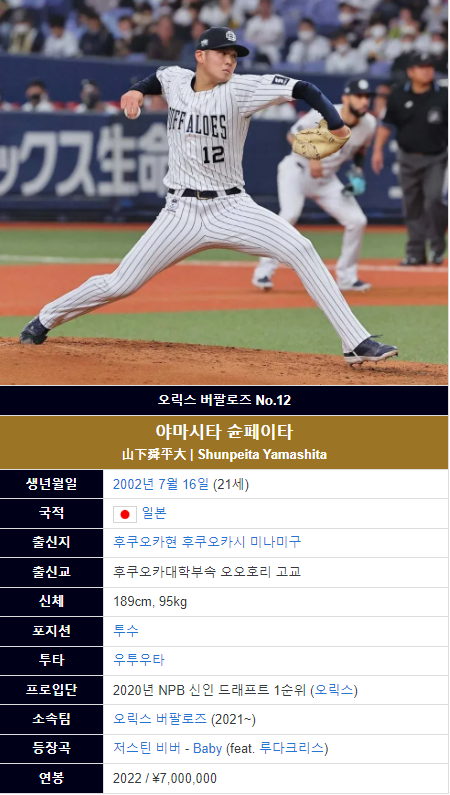 그 야마모토 보다  야마시타가 년차대비 기록이 훨씬 좋습니다 드래프트1위는 분명 달라요