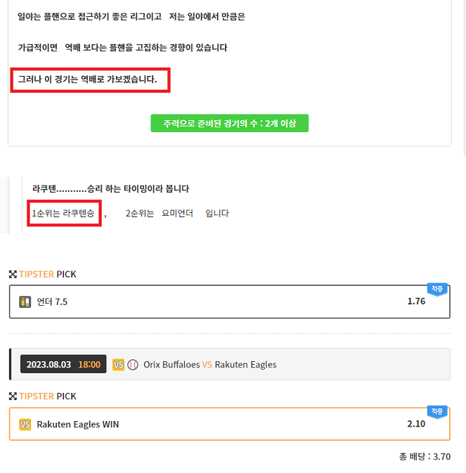 모든 분석은 그렇게 밖에 나올수가 없어요   오릭스승 안나오면 이상한 경기입니다