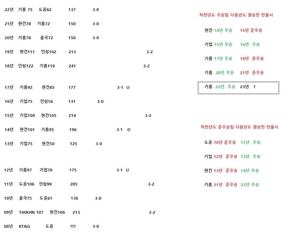 그것은 이미 과거의 기업은행 일뿐   최근 5년간을 놓고보면  그냥 중위권 이하의 팀 이었져