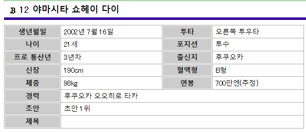 물론 대부분의 사람들은   야마시타 라는 신인선수를 ....... 그렇게 까지 디테일하게는 잘 모르실겁니다