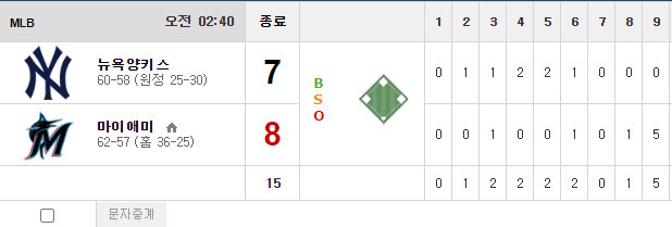 어제 이긴 마앰의 패배 , 어제 패배를 한 양키의 승