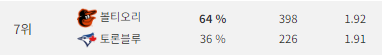 토론토가 30개팀중 8위인데     알동에서는 3위 입니다.