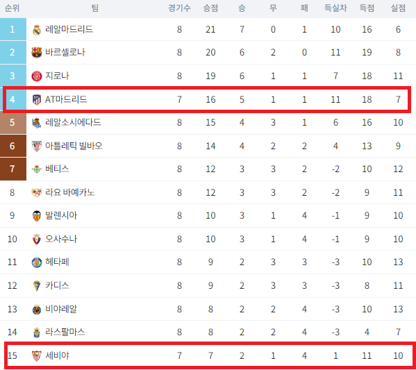 세비야는  현재 폼이 좋다고 볼수 없을겁니다     2승 1무 4패  져