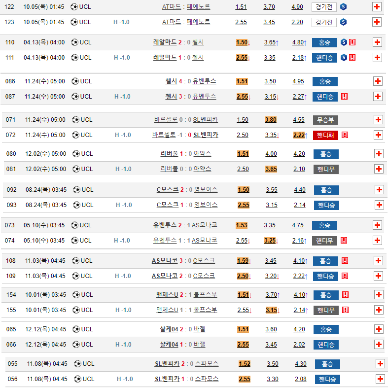 지난 10년간  UCL  에서     홈팀의  배당이  1.5대를 형성하고