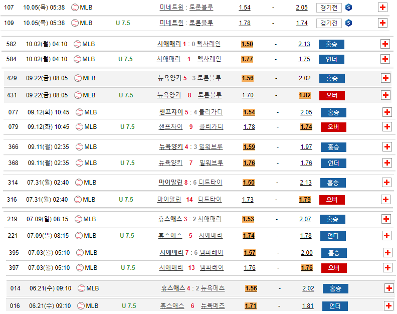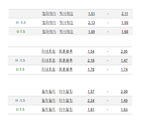 모두 다  1.5대 배당대를 형성하고 있지만  텍사는  토론토와 마앰처럼 2.0대가 아닌