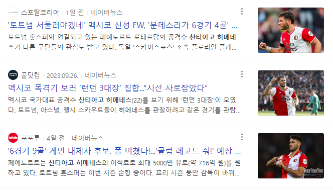 폐에노르트의  멕시코 초신성  산티아고 히메네스  라는 선수가 있습니다