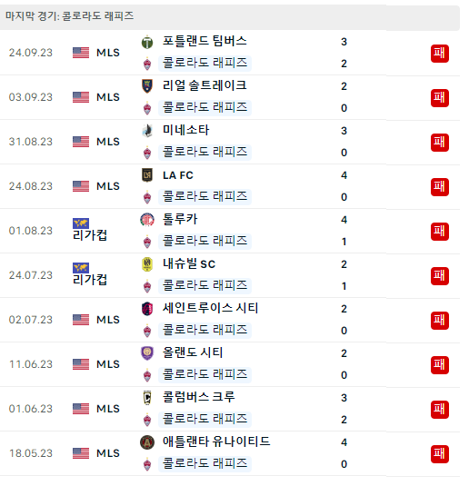 그러나 콜로라도  원정 꼴찌 입니다   2승 3무 10패