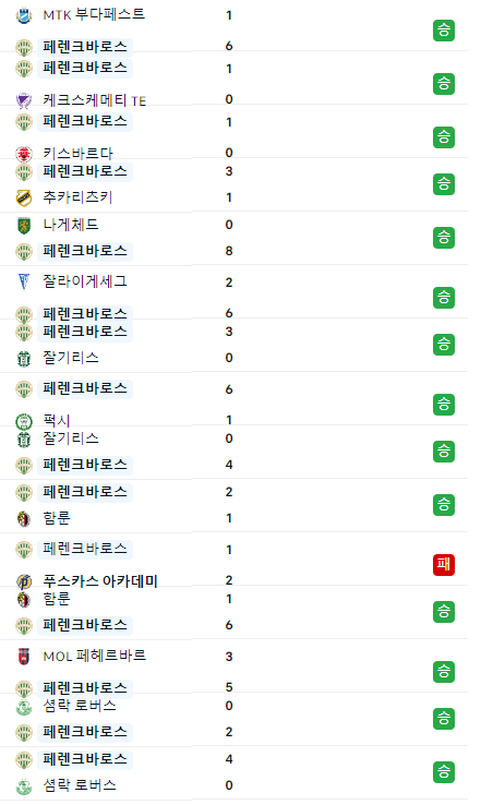 페렌스 바로시는 헝가리1위팀입니다. 리그를 지배하고 있져.
