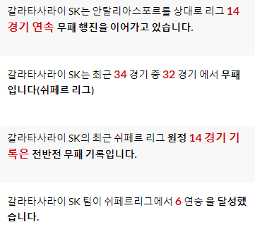 갈라타샤가   19승  15무  5패   인데