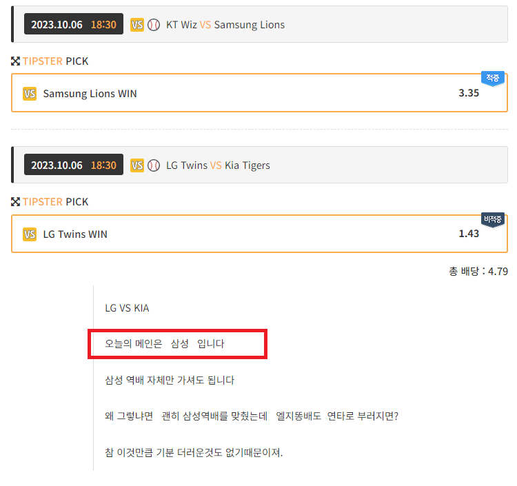 4일부터 5일까지   116회차 는  KBO  8경기   中   6경기 정배 75%   , 2경기 역배  25% 였습니다