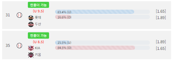 롯데는 언더에  83%     기아는  오버에 84%   정도가   구매율이 잡혀있습니다