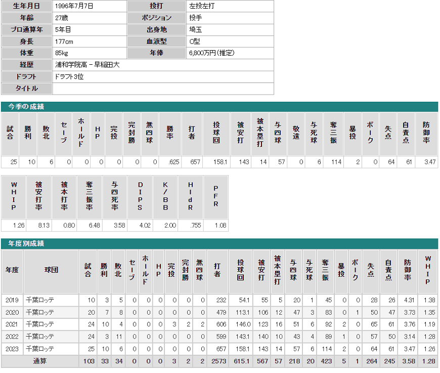 기본적으로 한가닥 했던 투수 입니다.   일야에서 15승 전후를 매년 찍는거는 어려운겁니다