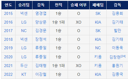 일단 2015년 부터 2022년 까지  총 8번의 와일드카드 결정전에서