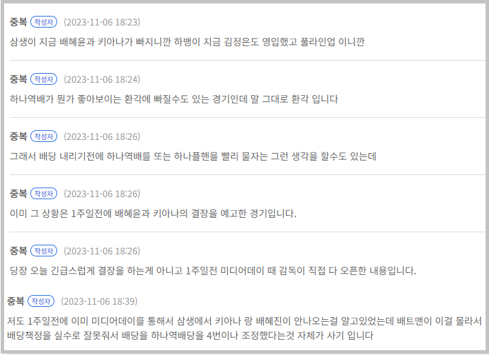 며칠전 여농2번째 경기에서  댓글에서 제가 구매자분들께 했던 코멘트 입니다.