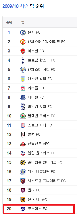 예전에 박지성 맨유시절에 포츠머스 라는 팀이 있었져    블랙번 위건 버밍엄 이런팀들 얼핏 기억나실겁니다