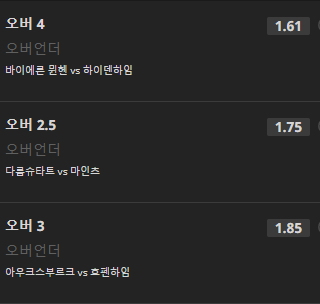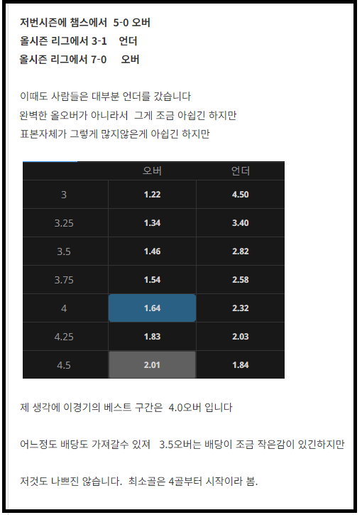참고로  뮌헨은  4.5오버 받으면   3경기 오버였고 1경기 언더 였습니다