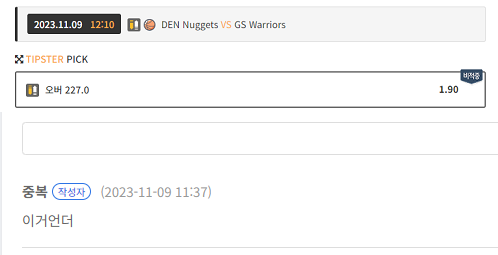 그런데 이렇게 제가 모든걸 다 파악하고 경기직전에 유료팁을 업로드 해버리면