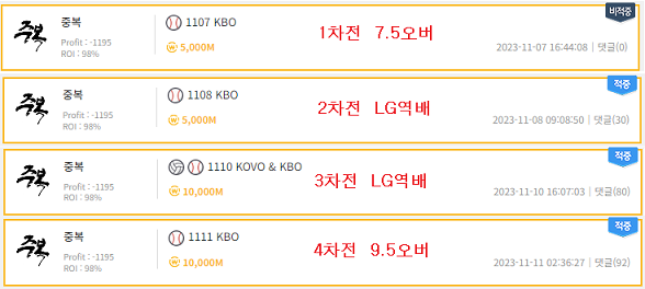 실제로 2차전과 3차전은 제가 금액을 좀 올려서 배팅했던것 같습니다