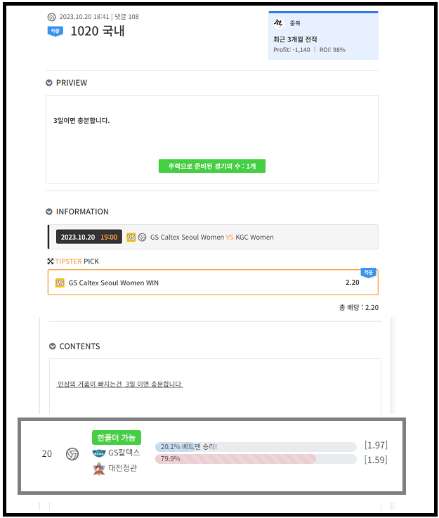 번외로  3대0 셧아웃  세트스코어 승리    4.6배 정도 도전