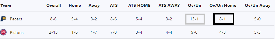 14경기에서 13오버를 기록한 인디애나.     크게 할 얘기는 없습니다