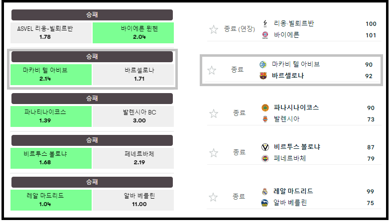 지난 이틀동안  유로컵하고 유로리그는 확실하게 승이 좋았거든요