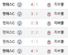 그리고  맨시티가 홈에서 리버풀을 상대로   3연승을 하는 그림을