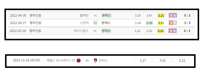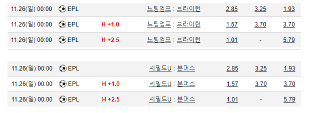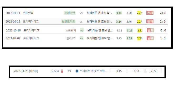 브라이튼경기는 플핸이지만     본머스는 정배의 승무 입니다.
