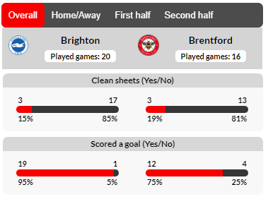 찾아보니  모든경기에서 골을 넣엏고  모든경기에서 골을 먹힌 브라이튼