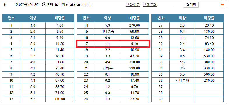 위에서 올려드린  양득  1.6배 와   브라이튼이 패배를 하지않고 승무를 하면서