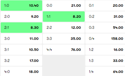 1대0 을 더 높게 봅니다.