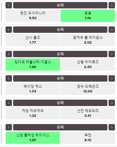 기본적으로   리그에서  6-7위 윗급   팀은 되야    광둥이 원정에서 패배합니다.