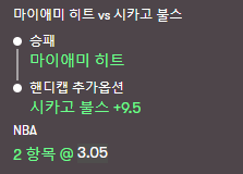 마앰이  이기면서    시카고가 9.5플핸을 하는 배당은