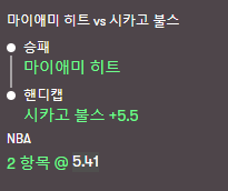 마앰이 이기면서    동시에   시카고가  5.5플핸을 하는 배당은  5.4배  입니다