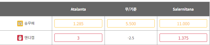 제 기준에 이 경기는 최소 살레르니의 1.5플핸 입니다