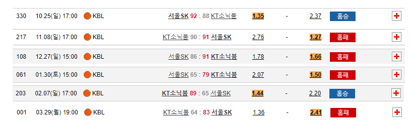 Suwon Sonicboom WIN 총 배당 : 1.74
