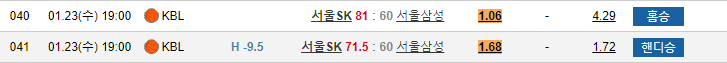 Seoul Thunders WIN +10.5 총 배당 : 1.90