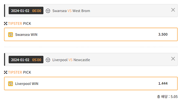 하는분들은   스완지 1플 에   리버풀을 엮어서 2배를 가시는게 좋습니다